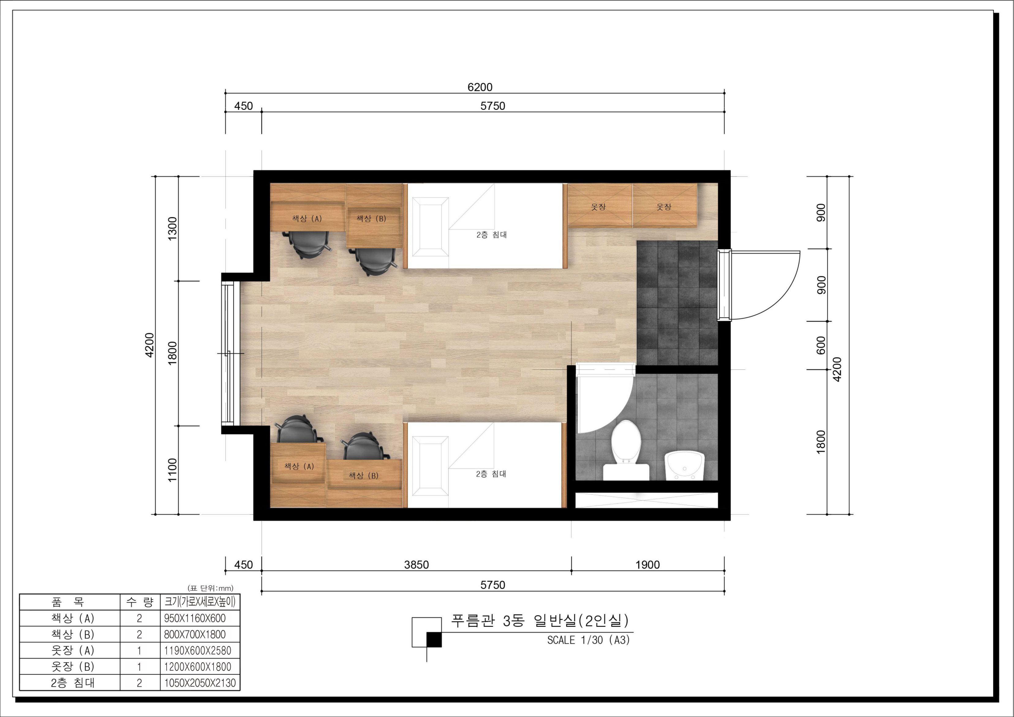 ※ 위 사진의 크기가 다른 2개 책상을 1인 사용