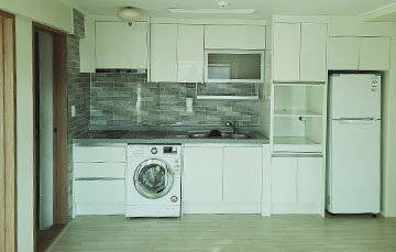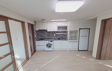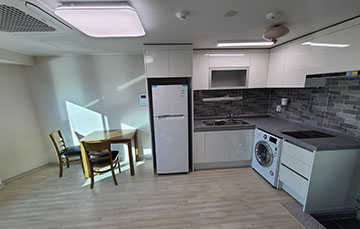 | 호실 | 방 및 거실 | 침대, 옷장, 싱크대, 냉장고, 세탁기, 식탁(2인용), 하이라이트 전기쿡탑, 신발장 |